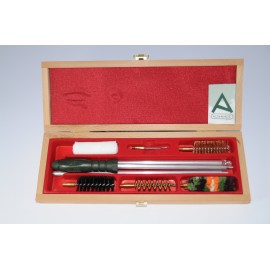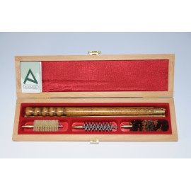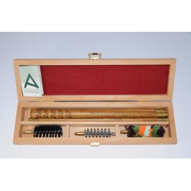 Nécessaire de nettoyage dans boîte en bois avec baguette acier gainée de plastique 3 pièces cal. 12-16-20-24-28-32-36-410